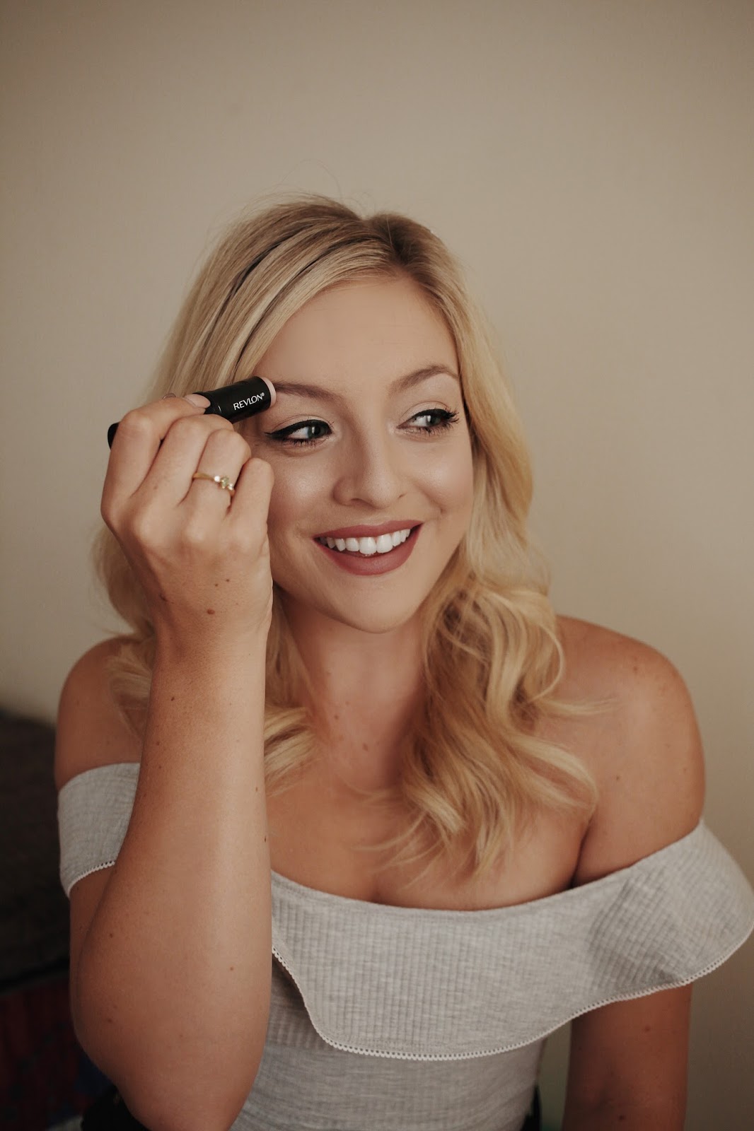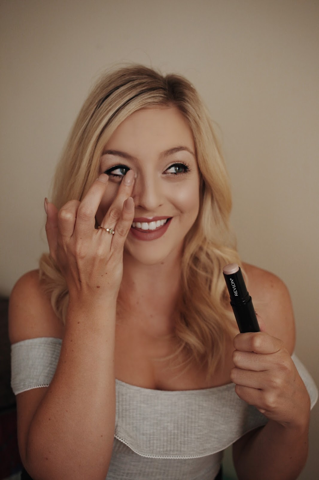 look. I was so excited when Revlon announced a highlighter on the go. I chose the iridescent rosy